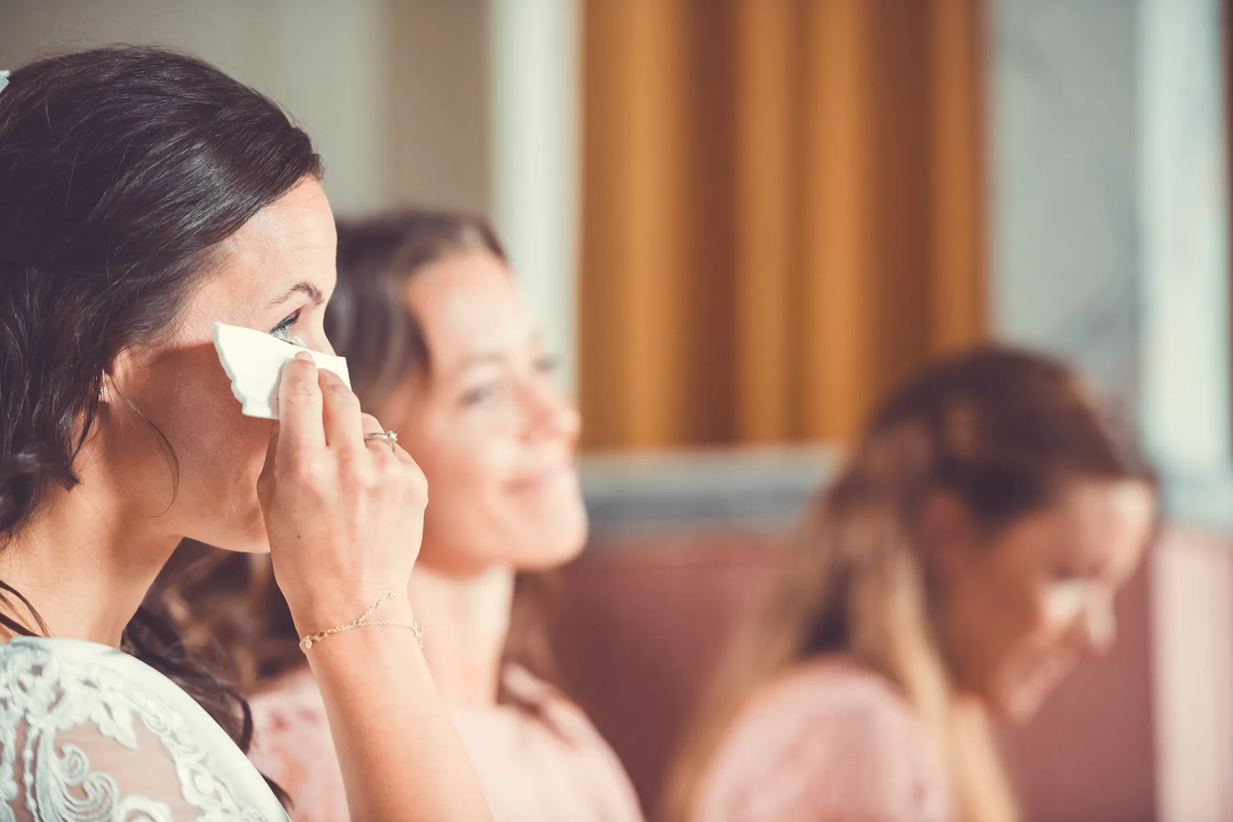 I et bryllup på feks 60 gjester eller mer så har jeg rutiner på å dekke en vielse fra forskjellige hold. Det vil si at jeg dokumenterer dette fra forskjellige øyne (de som sitter i salen). Dette gir et rikt og variert utvalg enn at jeg tar noen få bilder. I tillegg dokumenterer jeg gjester fra ulike hold. Det er ikke uvanlig at jeg tar mellom 200-300 bilder fra kun vielsen.