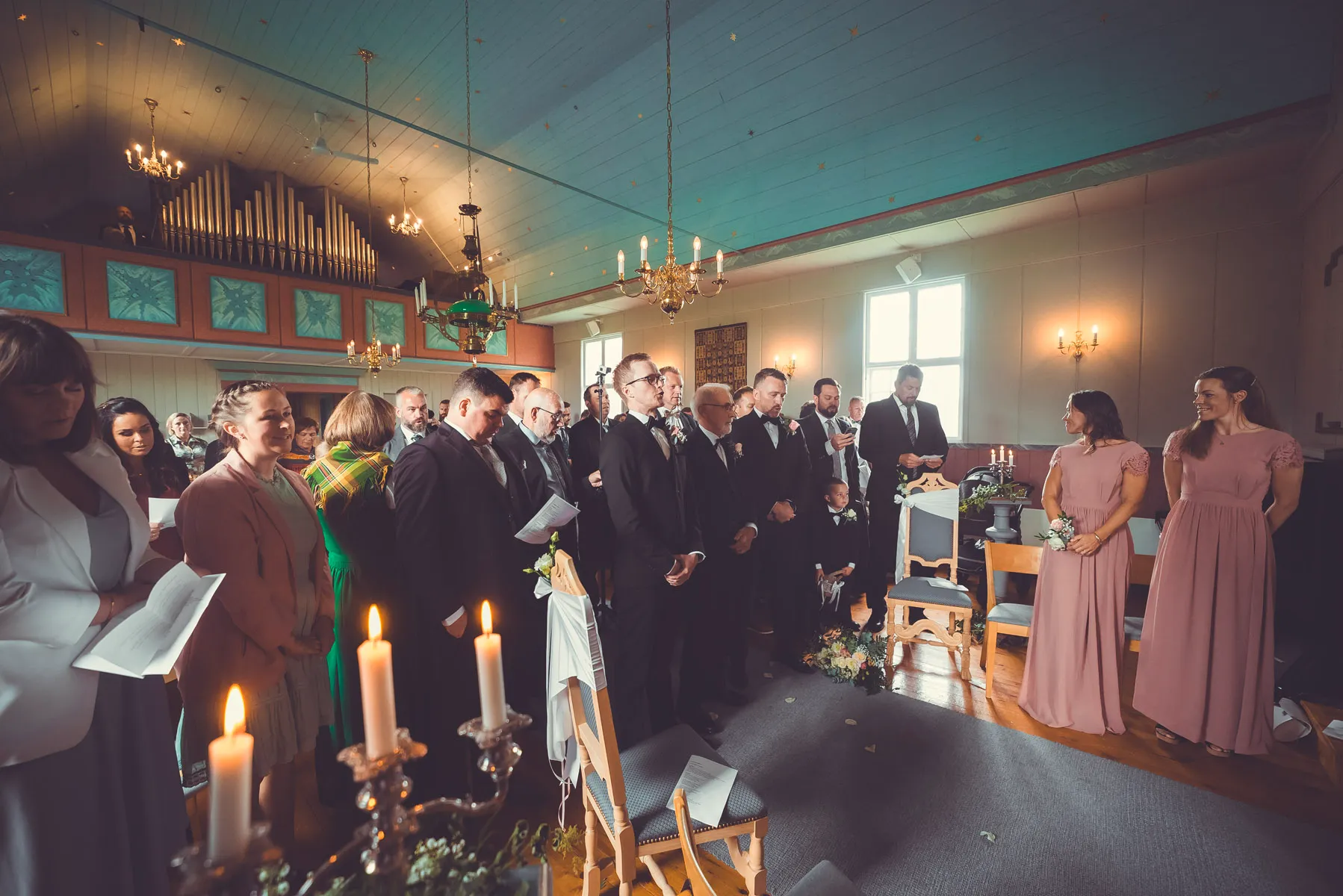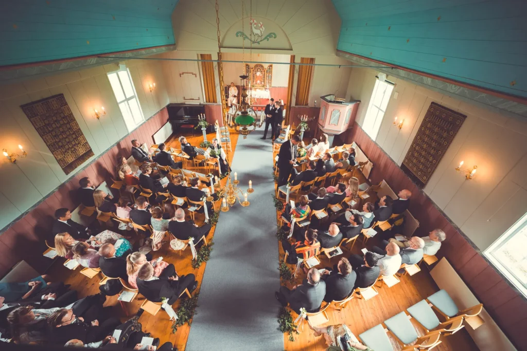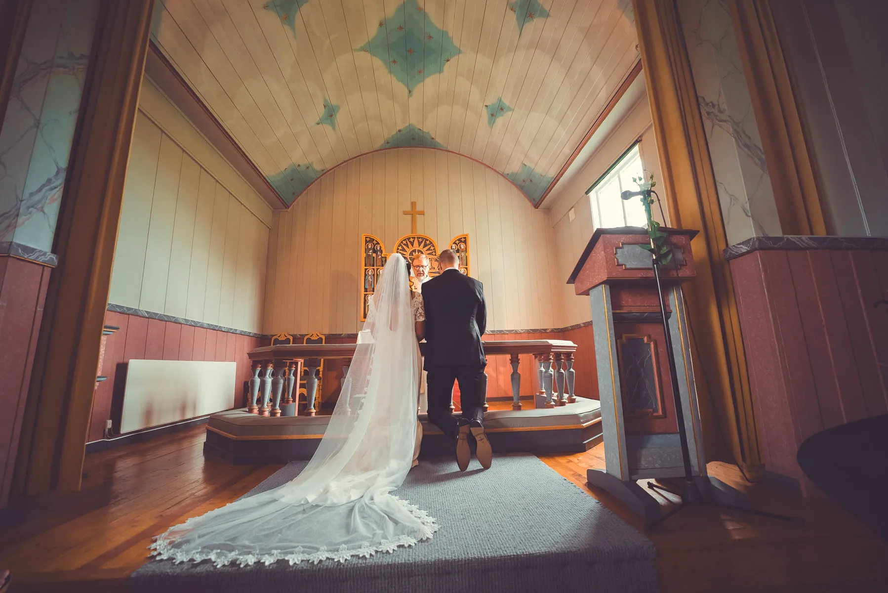 Å fotografere en vielse handler ikke bare om å dokumentere det som skjer – det handler om å fange essensen. Derfor bruker jeg ofte en vidvinkel under seremonien, slik at hele rommet, stemningen og menneskene som betyr noe for dere kommer med. På den måten får dere ikke bare bilder av øyeblikket, men av helheten.