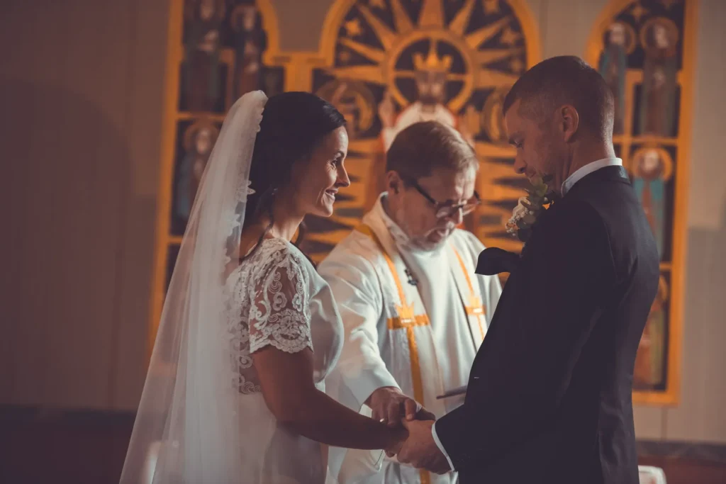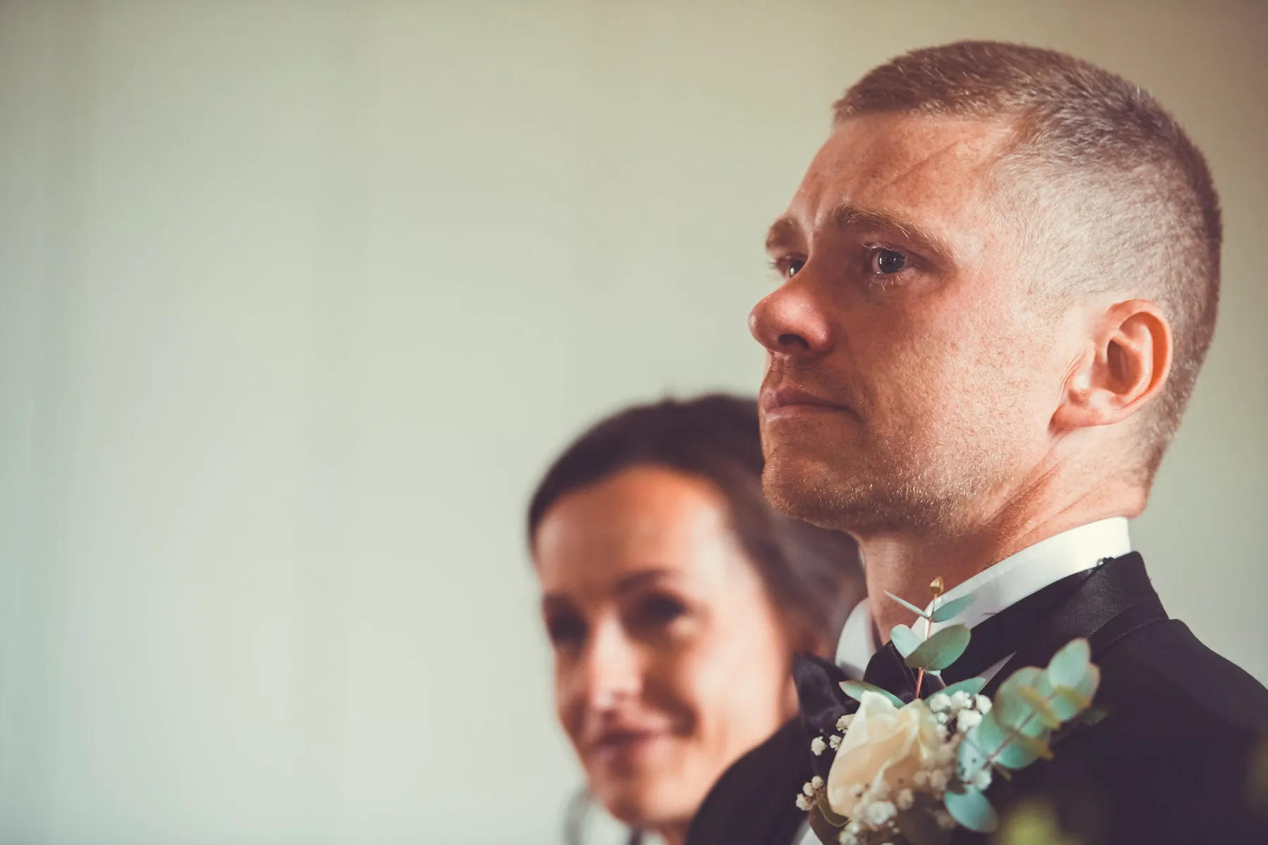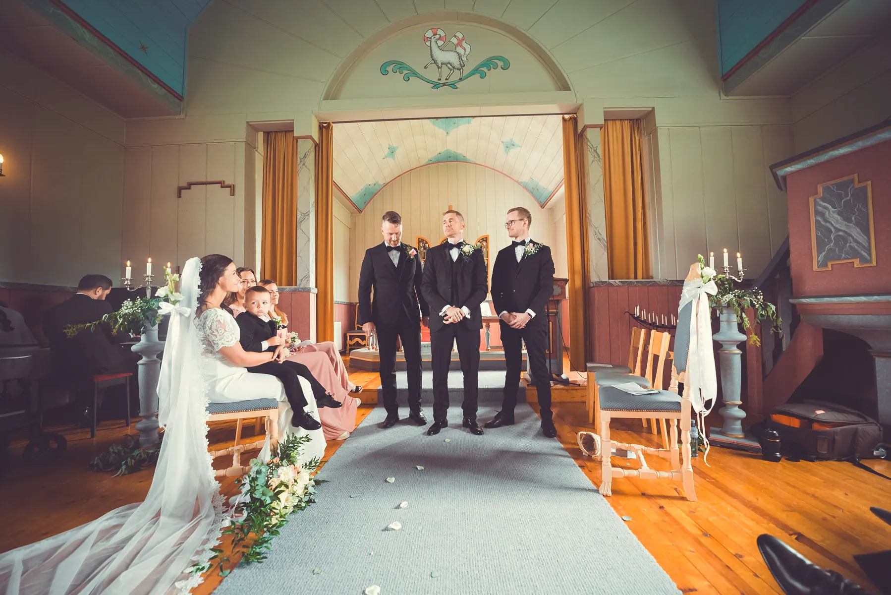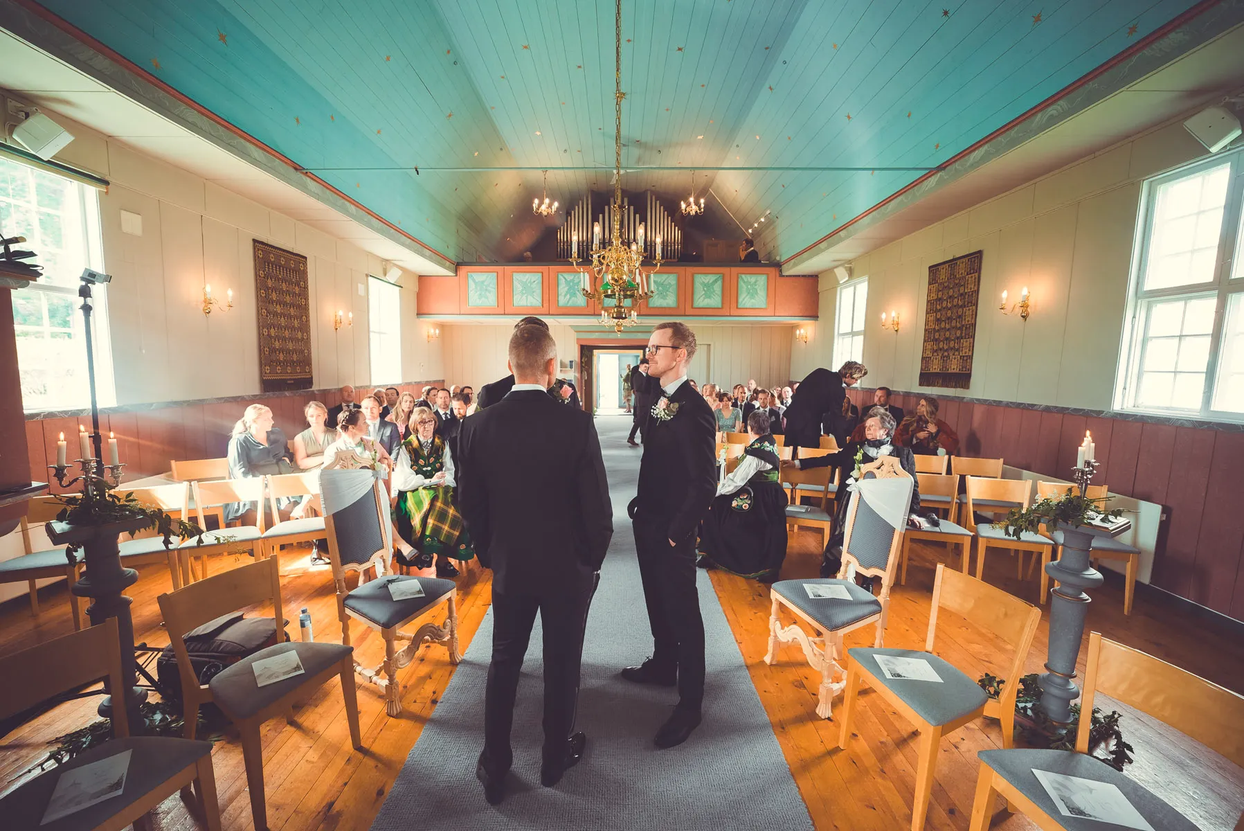 Å fotografere en vielse handler ikke bare om å dokumentere det som skjer – det handler om å fange essensen. Derfor bruker jeg ofte en vidvinkel under seremonien, slik at hele rommet, stemningen og menneskene som betyr noe for dere kommer med. På den måten får dere ikke bare bilder av øyeblikket, men av helheten.